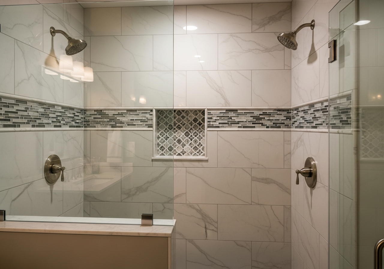 Custom tile from scratch. Waterproofed, grouted, sealed. 3–14 day install.